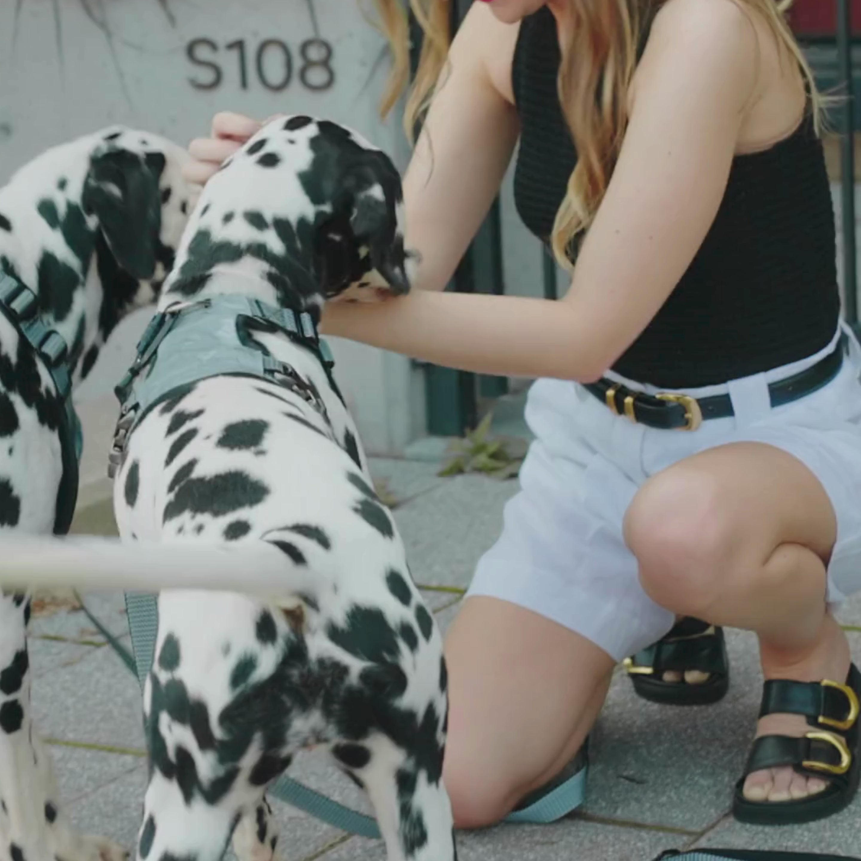 Flare harnesses and leashes are built with reflective materials integrated throughout the entire design, including the stitching.